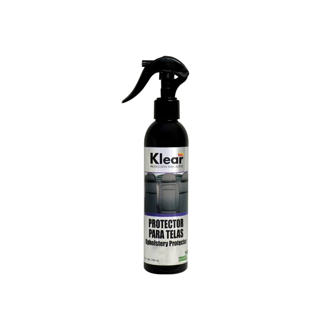 Klear Protector para Telas está diseñado para impermeabilizar y proteger tapicerías de tela, evitando daños por líquidos, derrames y manchas, manteniendo la tela limpia por más tiempo. No forma película visible, por lo que los efectos protectores son imperceptibles al tacto y la vista. Ideal para tapicerías nuevas o recién lavadas de punto fino o microfino. Producto listo para usar, fácil de aplicar, que prolonga la vida útil de la tela y mantiene su estado original. Perfecto para interiores de vehículos, muebles o cualquier superficie textil que requiera protección contra derrames y suciedad.