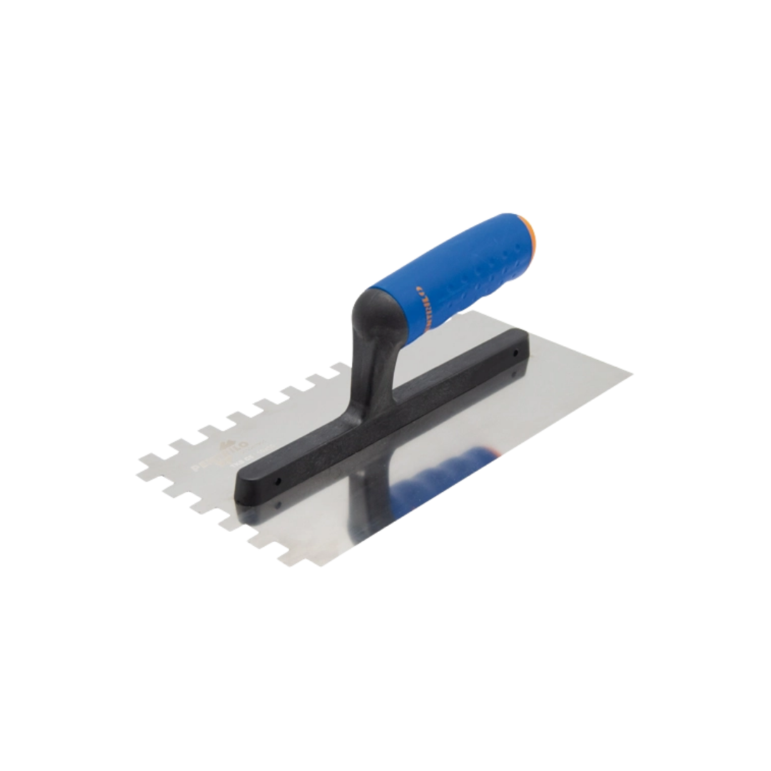 Llaneta dentada profesional Pentrilo con diente de 3 mm 280, ideal para la aplicación uniforme de adhesivos, colas y revestimientos. Diseñada para ofrecer control, precisión y acabados consistentes en trabajos de colocación y decoración