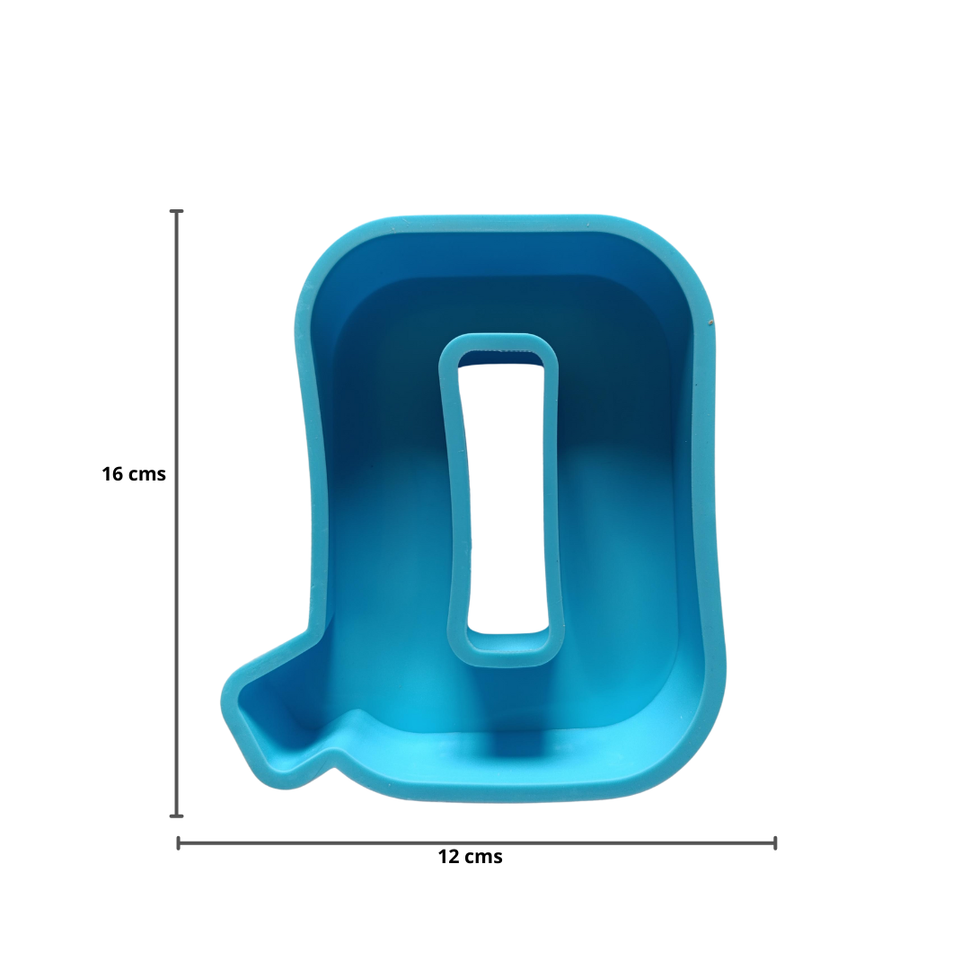 Molde de silicona para resina con letra "Q" grande, ideal para crear letras decorativas personalizadas. Flexible, reutilizable y fácil de usar.
