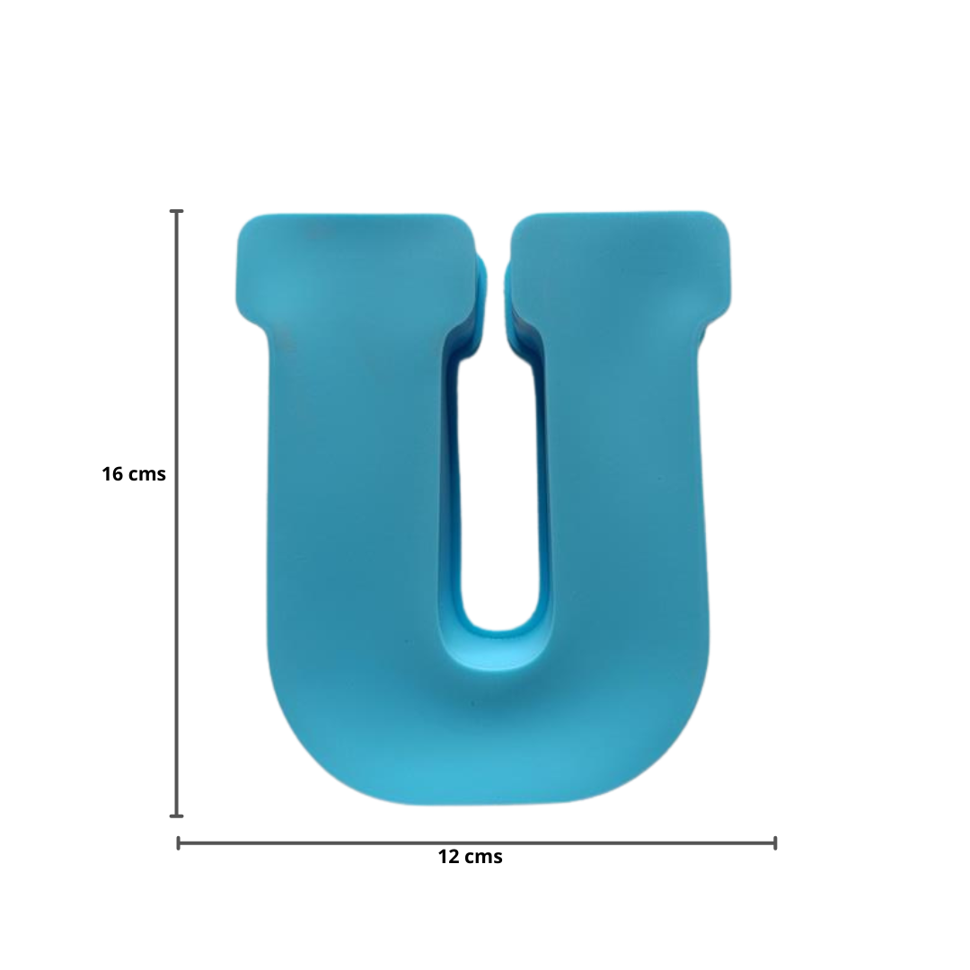 Molde de silicona para resina con letra "U" grande, ideal para crear letras decorativas personalizadas. Flexible, reutilizable y fácil de usar.
