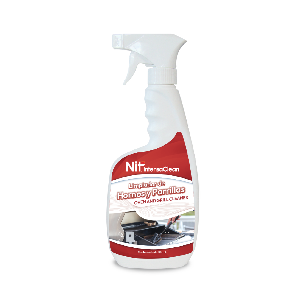 NIT INTENSACLEAN LIMPIADOR DE HORNOS Y PARRILLAS es un desengrasante sin aroma que remueve eficazmente la grasa, el aceite, residuos de materia organica y otros contaminantes depositados en rejillas, bandejas y utensilios usados para parrillas y hornos.