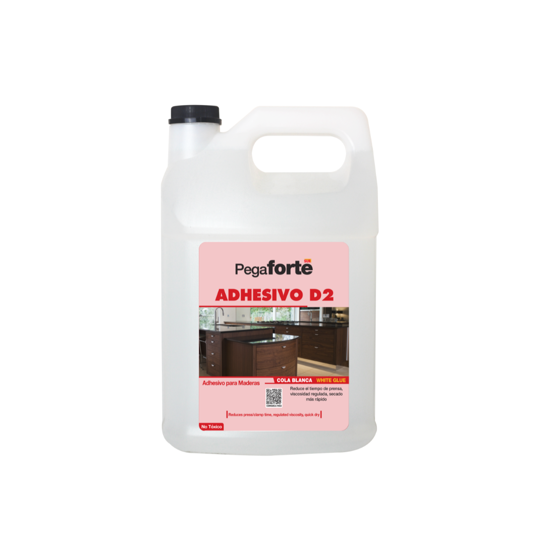 Pegaforte Adhesivo D-2 es un adhesivo PVA desarrollado para el pegado de maderas en la industria del mueble. Es de color blanco y al secar se vuelve rígido y translúcido, es un adhesivo fácil de lijar.