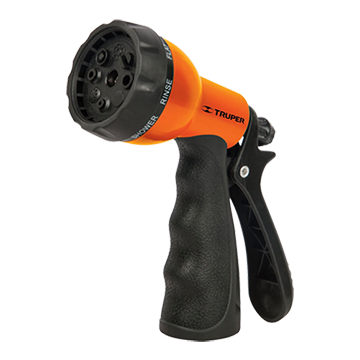 Pistola plástica, 8 funciones.Cuerpo plástico con diseño ergonómico Clip para flujo continuo, permite que el agua fluya sin apretar constantemente Cabeza giratoria para ajustar a la función elegida. Herramienta Truper diseñada para jardinería y uso doméstico, fabricada con materiales resistentes que garantizan durabilidad, funcionalidad y comodidad en tareas de riego, poda y mantenimiento del jardín.