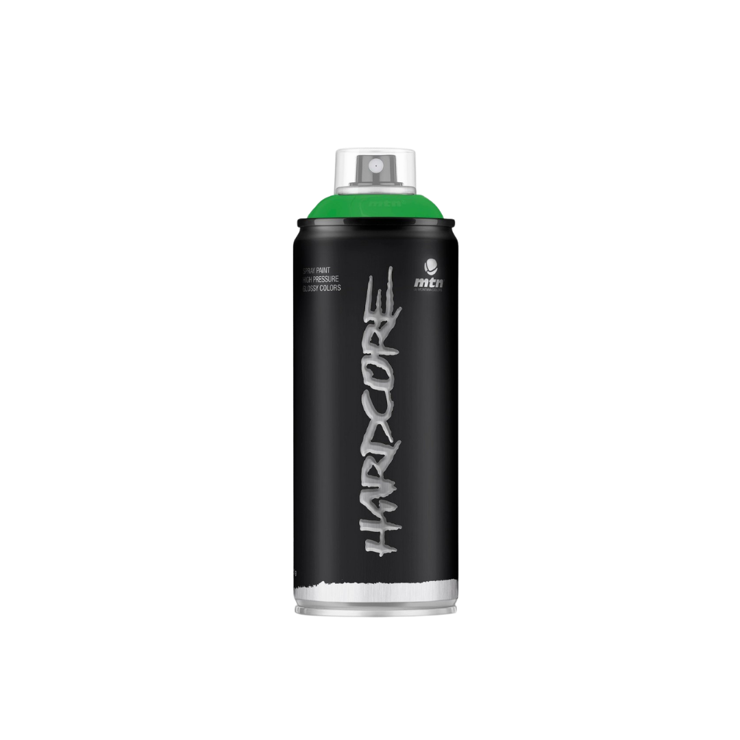 Aerosol de pintura MTN Hardcore color verde cologno: spray de alta presión con acabado brillante, secado rápido y gran resistencia, ideal para graffiti, arte urbano, decoración y proyectos creativos.