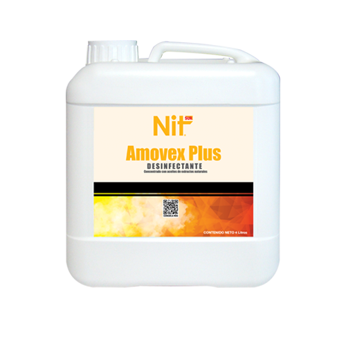 Amovex Plus es un desinfectante concentrado diseñado para la eliminación de bacterias Gram negativas,Gram positivas y virus; también presenta efecto contra hongos, algas y levaduras. Los extractos de aceites naturales volátiles actúan como indicador de la aplicación. El producto disminuye los olores generados por una alta carga de materia orgánica en descomposición. Presentación de Galón.