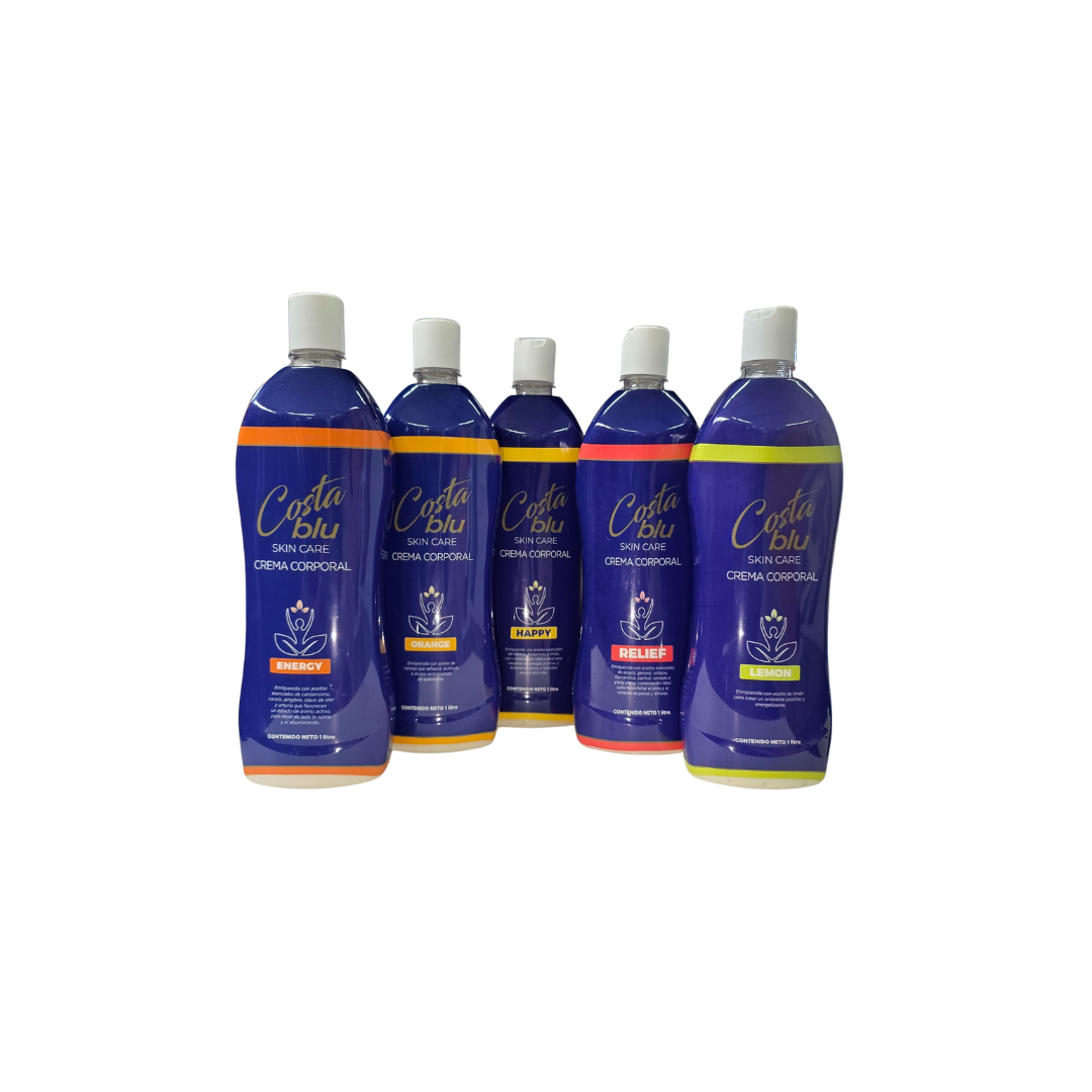 El Kit Costa blu Hidratación Total está pensado para quienes priorizan el cuidado constante de su piel. Incluye cinco cremas corporales de 1 litro a elección, formuladas para hidratar, suavizar y proteger la piel en cada aplicación. Su tamaño es ideal para uso diario, familiar o profesional, garantizando bienestar por más tiempo. Cada crema transforma tu rutina en un momento de autocuidado consciente, aportando confort y nutrición duradera. Perfecto para quienes buscan practicidad, variedad y resultados visibles, sin dejar de disfrutar una experiencia sensorial que acompaña tu día a día.