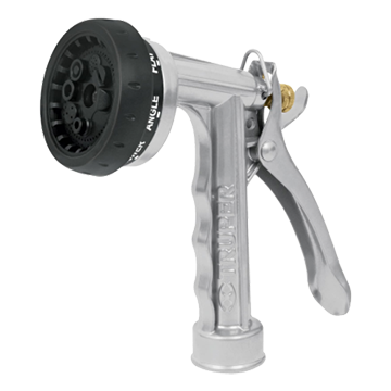 Pistola metálica para riego, 8 funciones. Cuerpo metálico con diseño ergonómico. Clip para flujo continuo, permite que el agua fluya sin apretar constantemente. Cabeza giratoria para ajustar a la función elegida. Herramienta Truper diseñada para jardinería y uso doméstico, fabricada con materiales resistentes que garantizan durabilidad, funcionalidad y comodidad en tareas de riego, poda y mantenimiento del jardín.