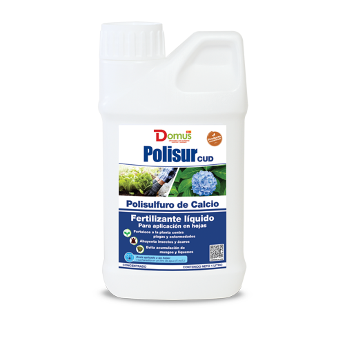 POLISUR CUD es un fertilizante líquido concentrado que se aplica diluido al suelo con abundante agua o en forma foliar mediante atomización. Aporta calcio y azufre esenciales: el calcio refuerza paredes celulares para reducir ataques bacterianos;el azufre favorece síntesis de aminoácidos y proteínas, contribuyendo al desarrollo equilibrado de la planta y, en algunas especies, mejorando el color de las flores. Su formulación de polisulfuro de calcio, de alta pureza y buena solubilidad, garantiza eficiencia y uso práctico. Está pensado para apoyo nutritivo en huertas, jardines y cultivos donde se busca mayor fortaleza estructural y salud vegetal.